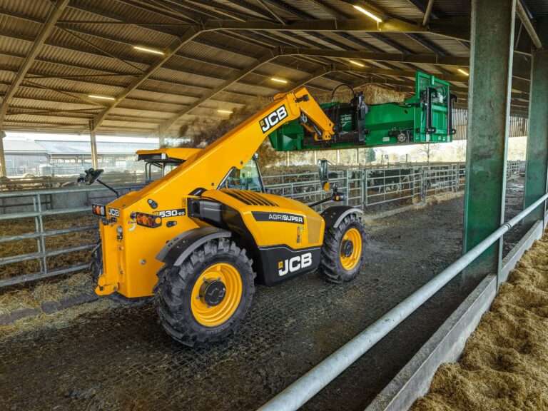 The JCB Loadall 530-60 AGRI Super is sized to match the needs of livestock farms with narrow aisles and passages, and caters for the needs of pig and poultry units in particular with compact dimensions for working inside buildings with restricted height.