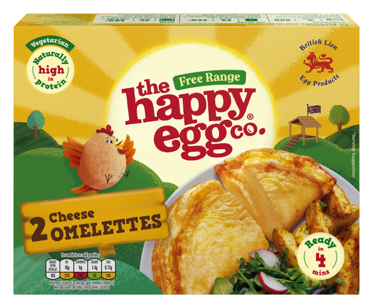 The frozen omelettes are available in two and four-packs and use free-range eggs from the happy egg co. brand, British extra mature cheddar, and milk.