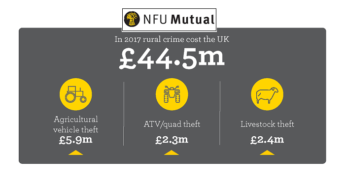 The cost of rural crime hit £44.5m in 2017, the highest for four years, according to rural insurer NFU Mutual.